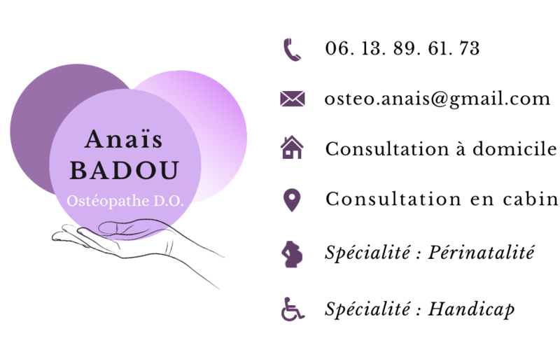 Anaïs Badou est ostéopathe D.O., diplômée d'Holistéa - Collège Ostéopathique Européen (cursus en 5 ans), établissement agréé par le Ministère de la santé.